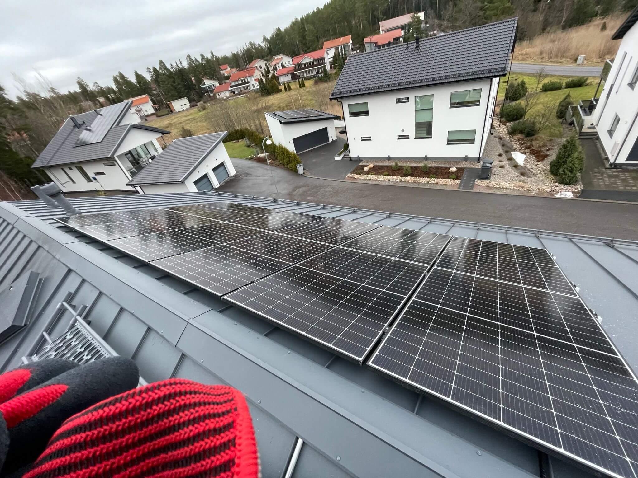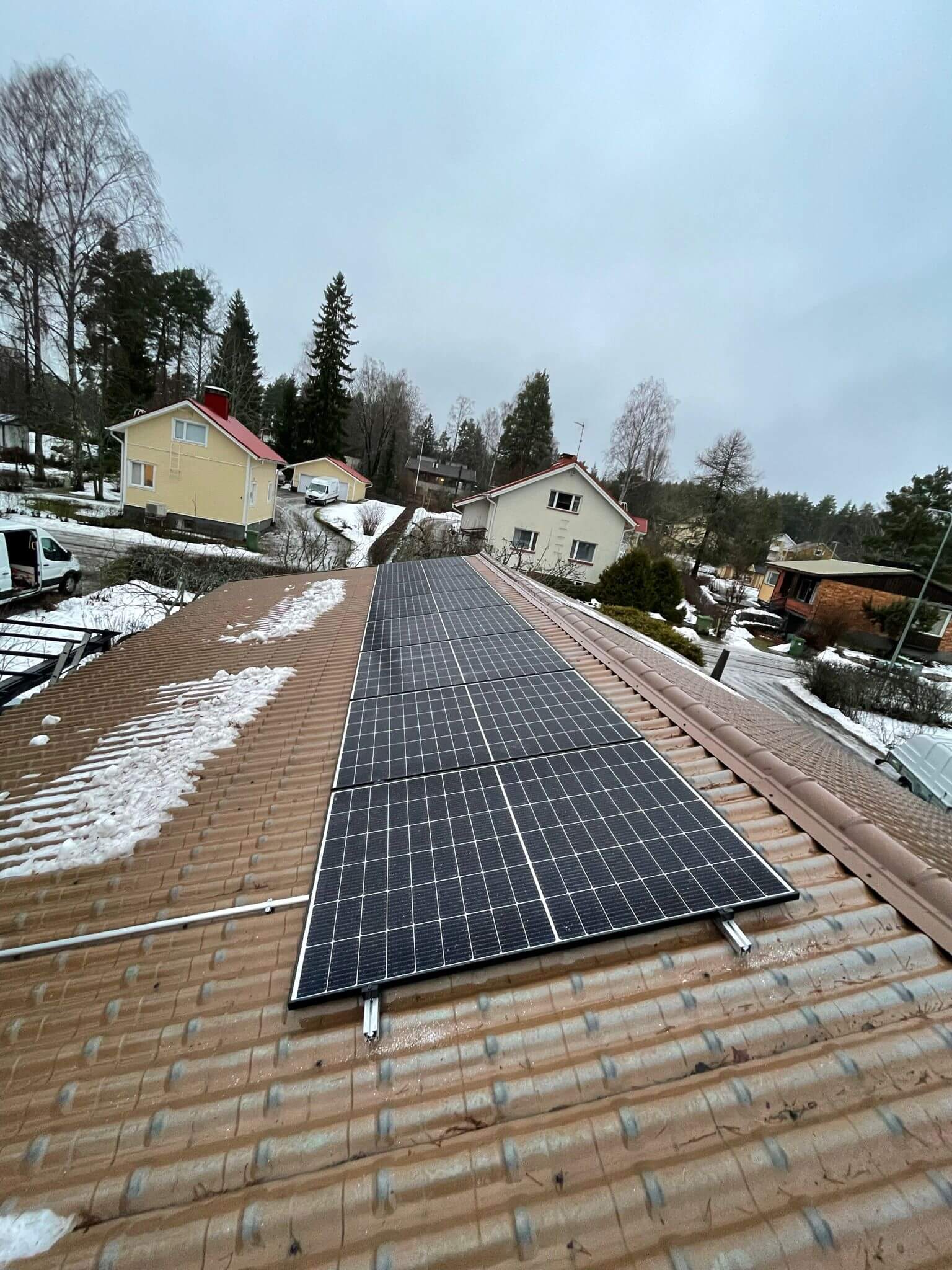 - Kaarinan paritalo: Itä–länsi-suunta, 12 kW Ledvance 445 W TOPCon-paneeleilla.